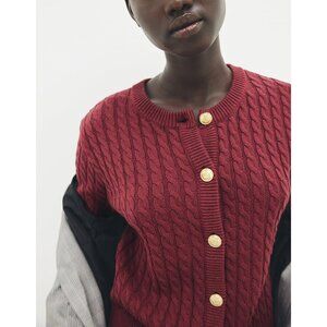 This vintage-inspired Y2K style cable knit cardigan is seriously adorable and versatile for different seasons and occasions. The short sleeve design and cropped silhouette give it a fun, retro vibe that’s perfect for pairing with anything from high-waisted jeans to skirts. The button-up front adds a sweet touch, and the lightweight, soft fabric feels comfy all day long.