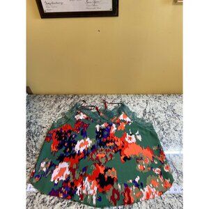 Women Cami Top XL Green Floral Lace Trim Adjustable Spaghetti Straps Cottagecore