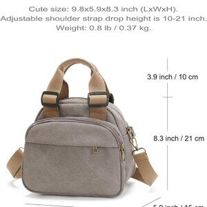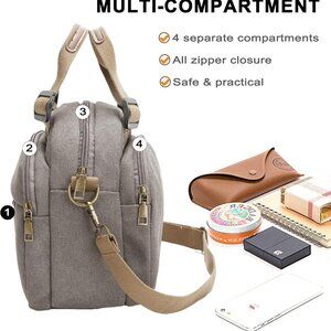 Features: This cute, lightweight canvas bag made of durable 16 oz washed canvas offers a comfortable feel and vintage look. It has four zippered compartments plus small inner pockets, so you can stay organized on the go. The adjustable shoulder strap (10-21 inches) and dual top handles make it versatile—carry as a shoulder bag or a crossbody. The stylish hardware and striped cotton lining add a retro touch.