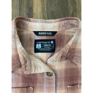 Women Carhartt Rugged Flex Loose Fit plaid button up flannel shirt, L