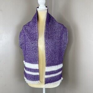 Women Cashmere Scarf Rectangular Stripes Purple 54” x 10”
