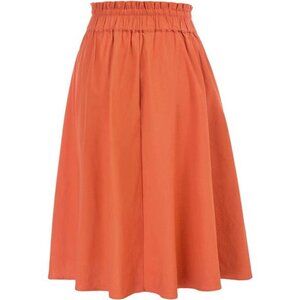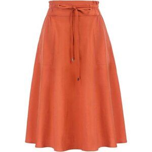 Women Casual Cotton Linen Skirts Frill Tie Waist A-Line Midi Skirt