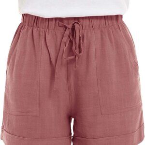Women Casual Shorts - Pink, Large, Elastic Waist, Pockets, Drawstring, Summer Re