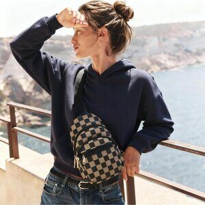 Women Checkered Coffee Imported Leather Small Crossbody Chest Sling Travel Bag