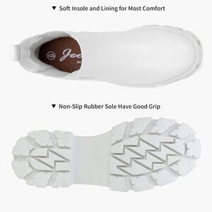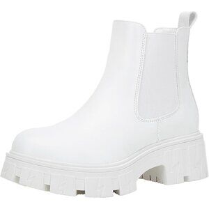 ⚡Women Chelsea Lug Sole-9620-all White Synthetic leather Ankle Elastic Band Boot