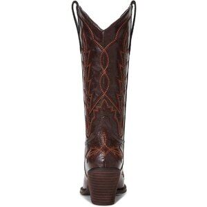 🆕Women Chestnut Brown Faux Leather Wood Embroidered Chunky Heel Cowgirl Boots