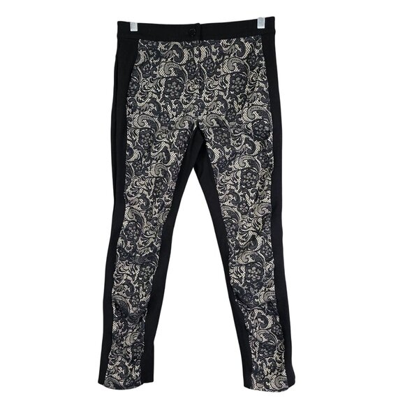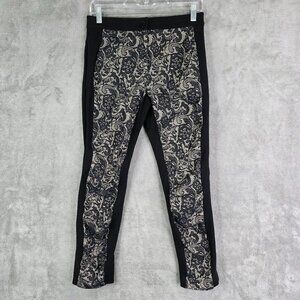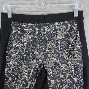 Women Chicos So Slimming Black & Lace Patterned Ankle Pants Slim Fit Size 00