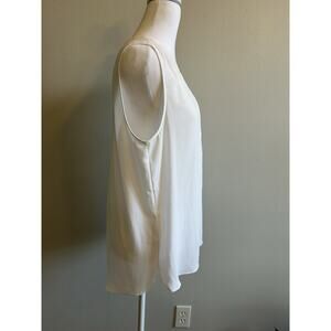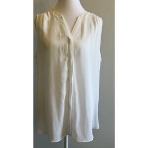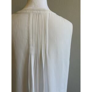 Women Chiffon Sleeveless Tank Pintuck Back Blouse V-neck Ivory Hidden Buttons S