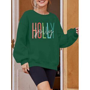 Women Christmas Sweater Cotton Long Sleeve Crewneck Holly Jolly Tree Top — Festive and comfy for the holiday season!