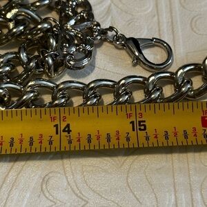 Women Chunky Chain Belt with Faux Pearl Dangles Silver Tone Triple Chain Front