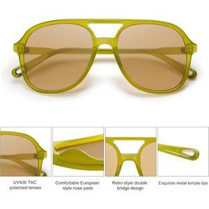 Women ClearOlive Green Brown Square Oversized Retro Polarized Sunglasses