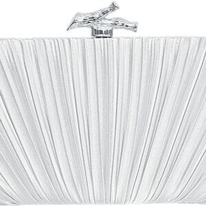 Features: Gorgeous satin clutch crafted from high-quality pleated silk fabric with a lovely sheen. Adjustable with a detachable chain strap, so you can wear it as a clutch, shoulder bag, or crossbody. The metal buckle and tree-shaped top button add unique flair and easy access. Compact yet roomy enough for your phone, keys, cosmetics and essentials. Perfect to elevate your look at parties, weddings, or formal events.