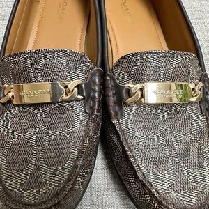 Almost as new, this pair of Coach loafers in size 6.5 B, style is Olive and color Tan/Chestnut.
