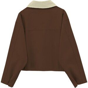 Women Coffee Cropped Utility Cargo Coat Contrast Collar Barn Outwear