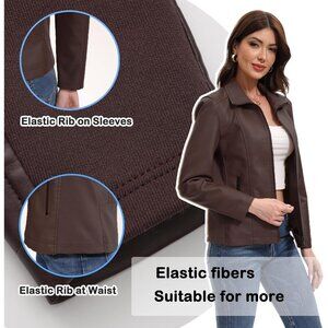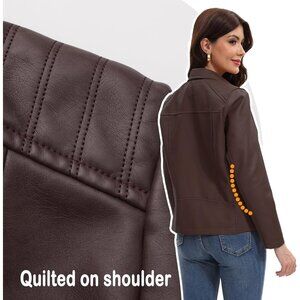 Women Coffee Faux Leather Motorcycle Jacket Zip Up Trendy Going Out Coat