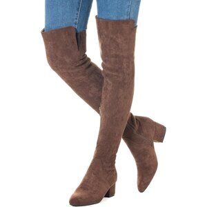 Women Coffee\2 Ihch Suede Over the Knee Thigh High Chunky Block Heel Boots