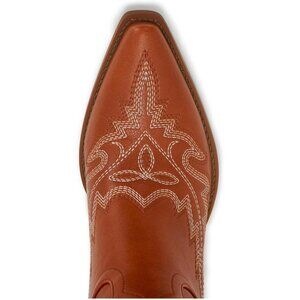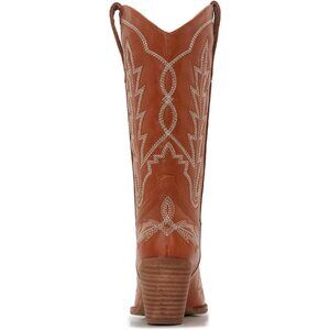 ⚡Women Cognac Brown Faux Leather Wood Grain Chunky Heel Cowgirl Boots