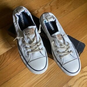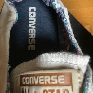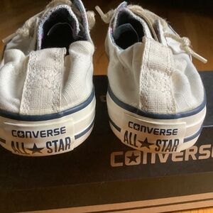 This sneakers are in excellent condition. Still have the original box. Off white with a navy trim. Come from pet free, smoke free home.