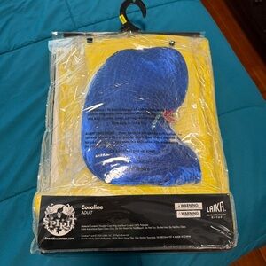 New never used womens Coraline costume size medium 8-10. Comes as shown in the photos. Ask any and all questions. No returns.