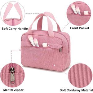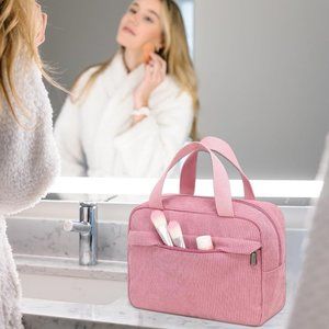 Women Corduroy-Pink Travel Tote Large Zipper Make Up Organizer Bags