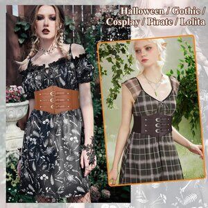 Women Corset Wide Stretch Waspie Elastic Waist Belt with Brown Buckle Gold