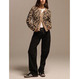 Brand New Women Cotton Blend Leopard Print Cardigan — a chic and versatile layering piece.