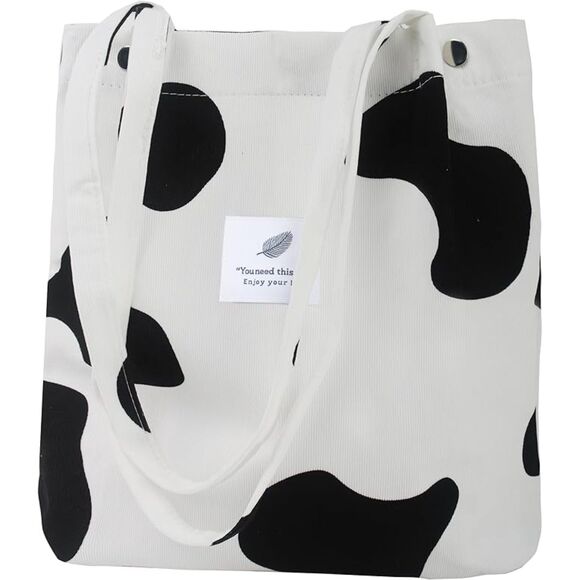 Women Cow Imported Corduroy Small Canvas Shoulder Handy Inner Pocket Tote Bag