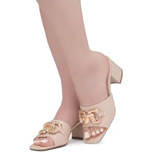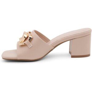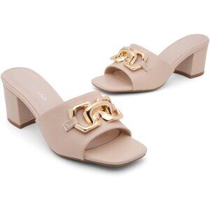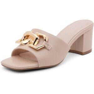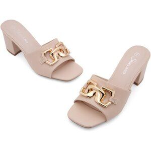 💫 Women Cream Casual Heeled Chunky Metal Chain Square OpenToe Party Prom Sandal
