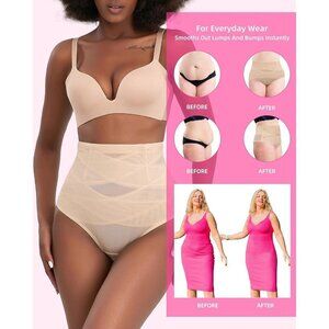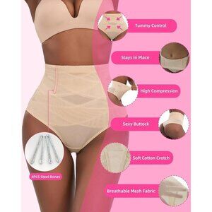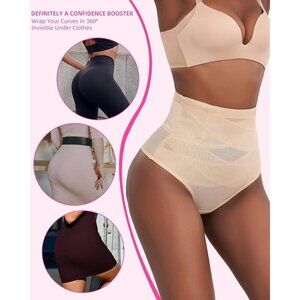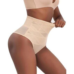 Women Cream Shapewear Tummy Control Thong High Waisted Body Panties Underwear