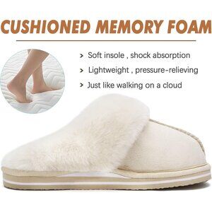 ⚡Women Cream Suede Fluff Dual Memory Foam Arch Support Warm Scuff Slipper