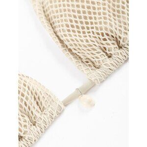 🆕Women Cream Triangle Bikini Top Fishnet Tie Back String Swimsuit Bathing Suit