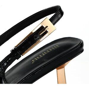 iiimmu Sling back heels: Slingbacks will elevate any look thanks to the shiny sculptural heels. They've been made from glossy patent leather or silk and have an exaggerated gold-tone buckle. The black/red/burgundy/brown/green/ivory/crocodile shade is endlessly versatile. Pretty Details on Dress Pumps: Slingback straps make it easy to put the women's heels on. The closed toe and large metallic buckles give the pumps a stylish and elegant look. Great match with dresses, wedding dress, skirts, stockings, pants, and jeans.