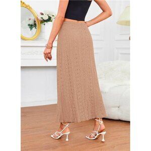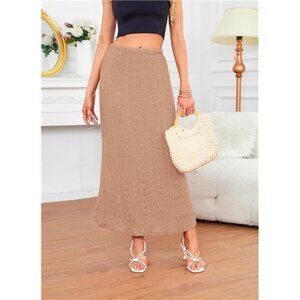 Women Crochet Skirt Summer Elastic Waist Khaki