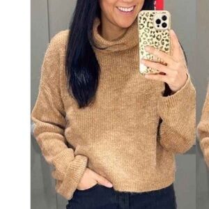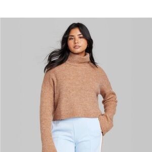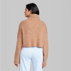 Women Cropped Turtleneck Pullover Sweater - Wild Fable Light Brown Soft and stretchy fabric in a loose-fit cut.