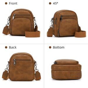 Features: Crafted from high-quality soft PU leather with vintage black metal hardware, this little crossbody is both good-looking and practical. It offers two removable shoulder straps—one wide canvas and one adjustable PU leather—giving versatile styling options. Multiple pockets include two main zippers, credit card slots, zippered pouches, and exterior zippered compartments for easy organization. Spacious enough for your essentials like your phone, cards, keys, and lip gloss, yet compact enough to carry everywhere.