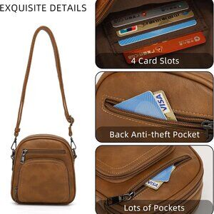Women Crossbody Bag Faux Leather Small Multi Pockets Slim Purse Shoulder