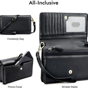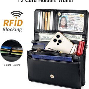 Features: This cute and versatile little bag is lightweight and easy to carry, with plenty of room for your phone, credit cards, cash, keys, lip gloss, and more. It has a main compartment, an interior zipper coin pocket, a cash pocket, and 12 credit card slots. The snap closure adds extra security. Comes with an adjustable, removable shoulder strap and a wristlet strap for multiple styling options.