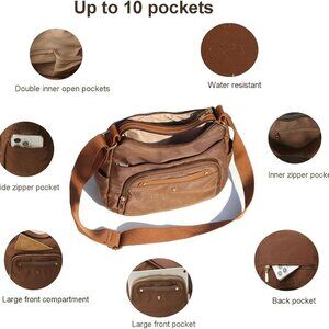 Excellent material &10-Pocket Purses Made of water-resistant nylon with leather and eco-friendly cotton lining . These purses feature a unique dual main compartment design, each containing 1 zip pocket and 2 open pockets inside. The exterior showcases 2 front big zip pockets, 2 side pockets, and 1 back zip pocket, providing ample space to organize your daily essentials such as phone, wallet, keys, and glasses.