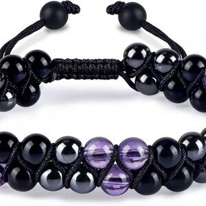 Women Crystal Bracelet Amethyst Obsidian Hematite Protection Energy Jewelry