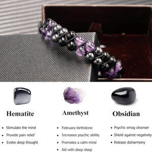 Features: Handcrafted triple protection bracelet with natural amethyst, obsidian, and hematite beads. Features a versatile beaded chain, stretchy fit comfortably on wrists from 6.7 to 7.5 inches. Perfect for daily wear, spiritual practices, or as a meaningful gift.