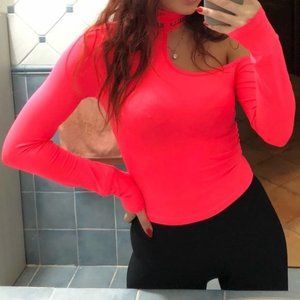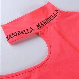 Women Cut-Out Crop Top Size M Magenta Asymmetric Shoulder Logo Maribella Stretch