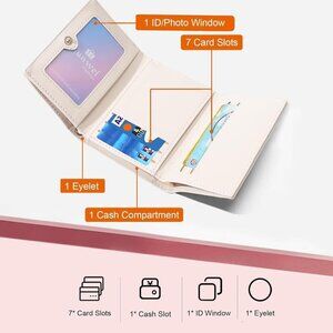 The cute aesthetic bow wallet has 1 cash compartment, 1 photo window, 1 eyelet, 7 card slots. Small wallet with enough capacity for everyday use.