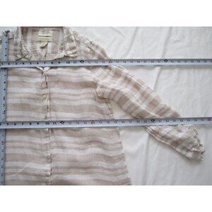 Women Cynthia Rowley 100% Linen Stripe Roll Up Sleeve Button Blouse Sz M (WB169)
