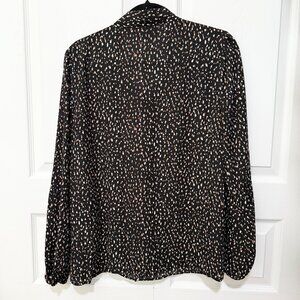 Women DKNY Lightweight Polka Dot Bubble Sleeve Blouse in Black Size Medium