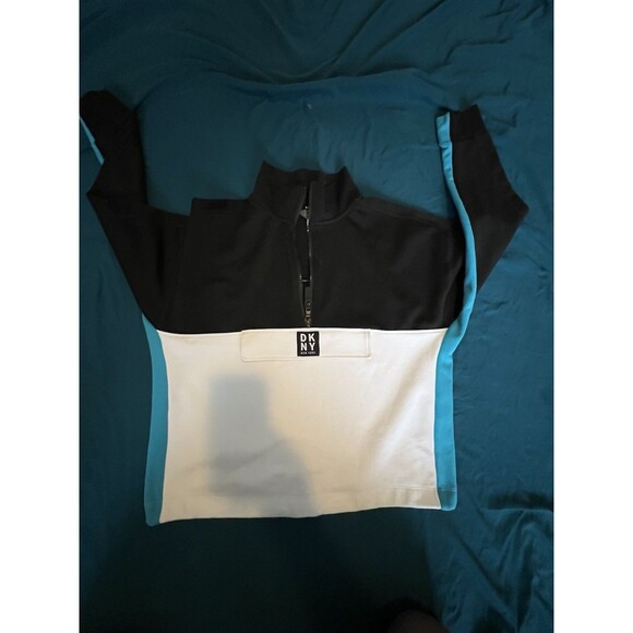 Women DKNY Sport 1/2 Zip Pullover Crop Logo Sweatshirt, Blue & Black Size Small