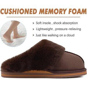 ⚡Women Dark Brown Suede Fluff Dual Memory Foam Arch Support Warm Scuff Slipper