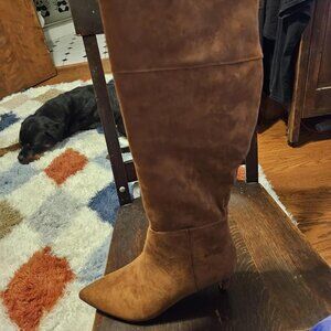 🆕Women Dark Brown Suede Thigh High Pointed Toe Kitten Heel Over the Knee Boot