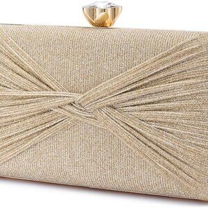 Women Dazzling Pleated Evening Clutch Bag Glitter Pleated Bow Handbag Wedding Pu