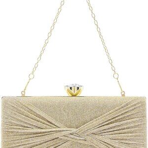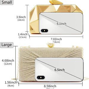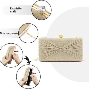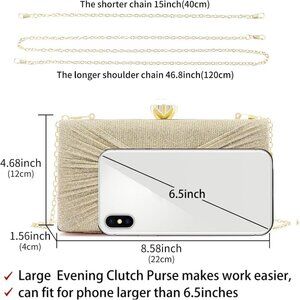 Perfect Size:8.58 x1.56x 4.68 inches ,please check the size before ordering.This dazzling pleated bow clutch is enough to hold your essentials,such as mobile phone,keys,cards,lipstick,small mirror and other small items.Wedding purses for women evening comes with detachable long chain 120cm /46.8in and short chain 40cm /15.6in, elegant evening bag or party clutch is easy to match your shoes or fascinators