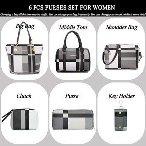 Size: 6pcs set (includes large tote, middle tote, shoulder bag, clutch, purse, key holder)